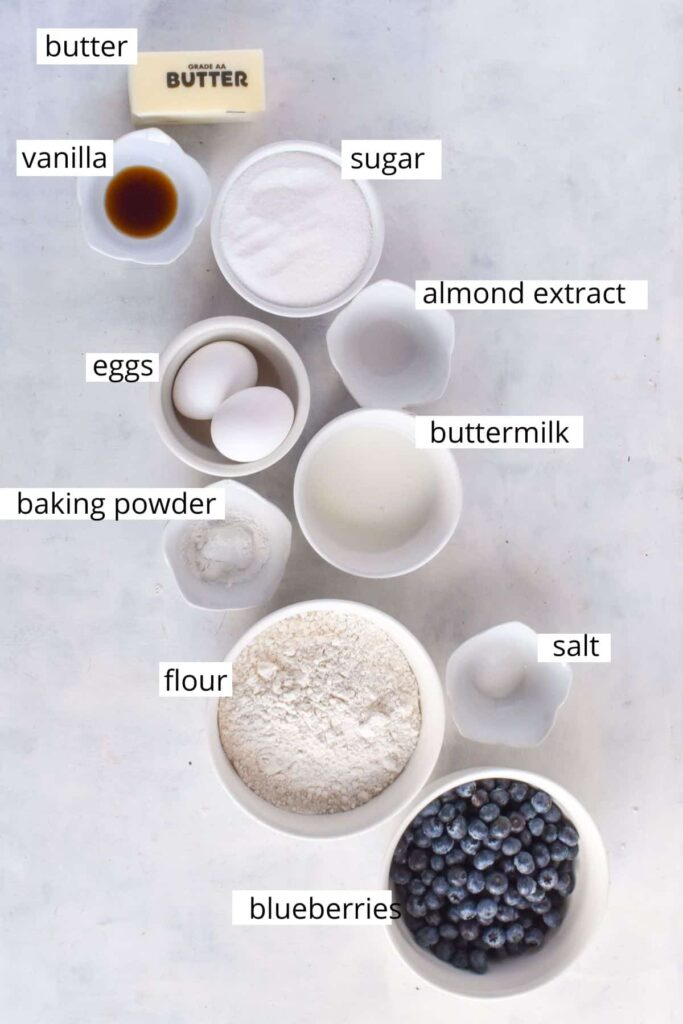 A standard recipe: 2 cups flour, 1 tbsp baking powder, 1/2 tsp salt, 1 cup sugar, 2 eggs, 1 cup buttermilk, 1/2 cup oil, 1 tsp vanilla, 1 1/2 cups blueberries. For premium options, source from King Arthur Baking. Fresh berries shine, but frozen (unthawed) prevent bleeding.