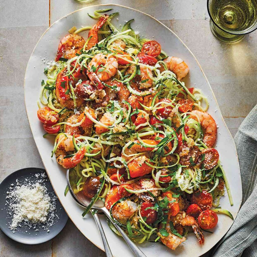 Zucchini noodles, or “zoodles,” are a fantastic low-calorie alternative to pasta. Paired with a homemade tomato basil sauce, this dish is light yet satisfying.